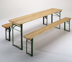 ![]() | Bierzeltgarnitur 50cm Tisch: 220 x 50cm Bank: 220 x 25cm | 14,-€/ Set |